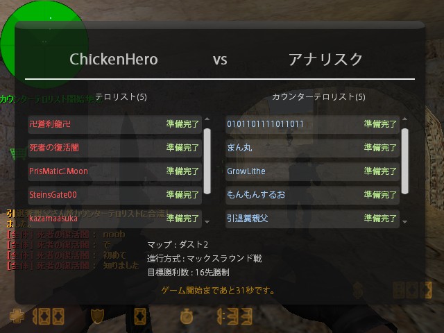 サイコロを三回振る&ピストルラウンドとられかけて萎え落ち